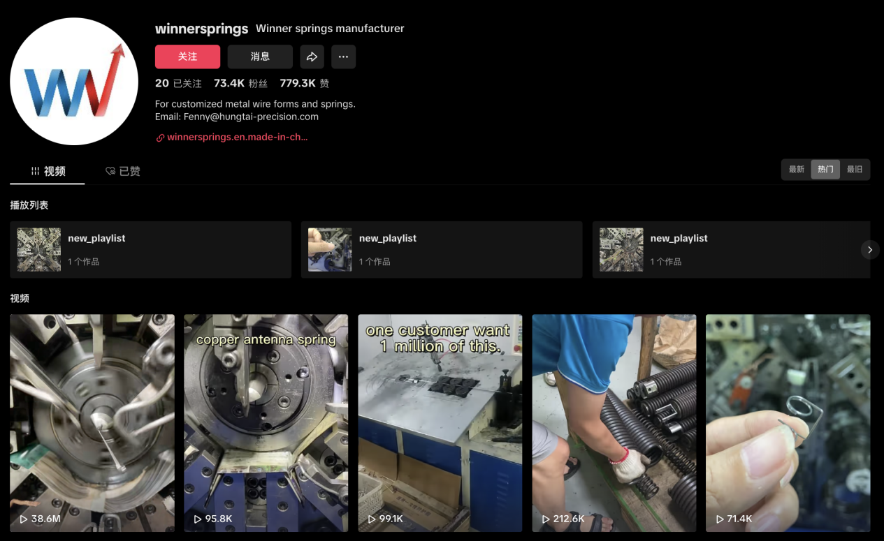 生产弹簧的机器在有条不紊地规律运作,钢丝被360度包围的8个机械手臂拉伸、扭转、弯曲、打圈、切割…… 另外的一条视频,播放量已超3800万次。评论区里有人急切询问价格,也有人惊叹于机器运作时精准流畅的表现。