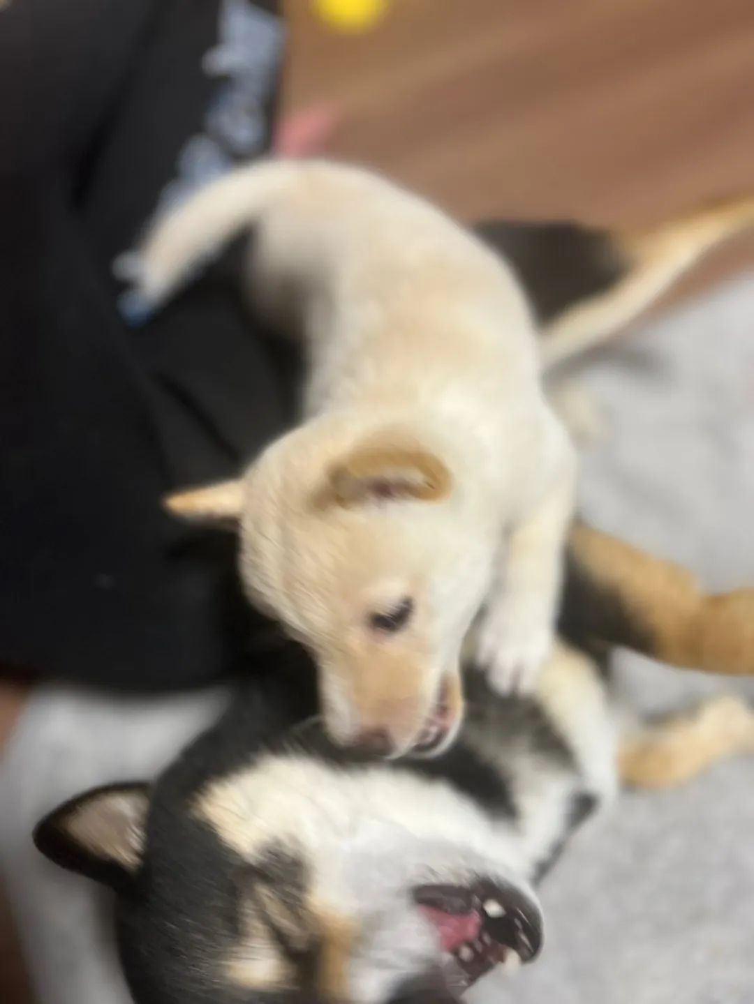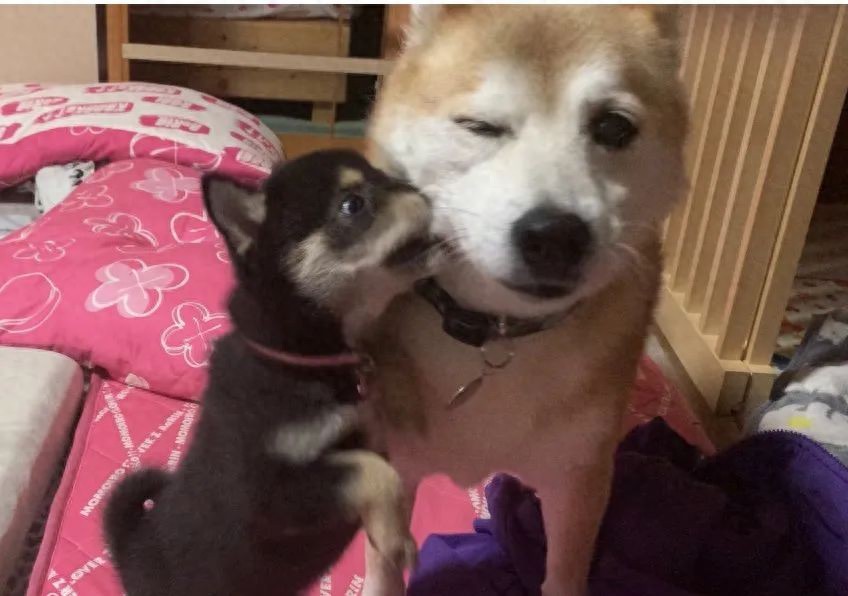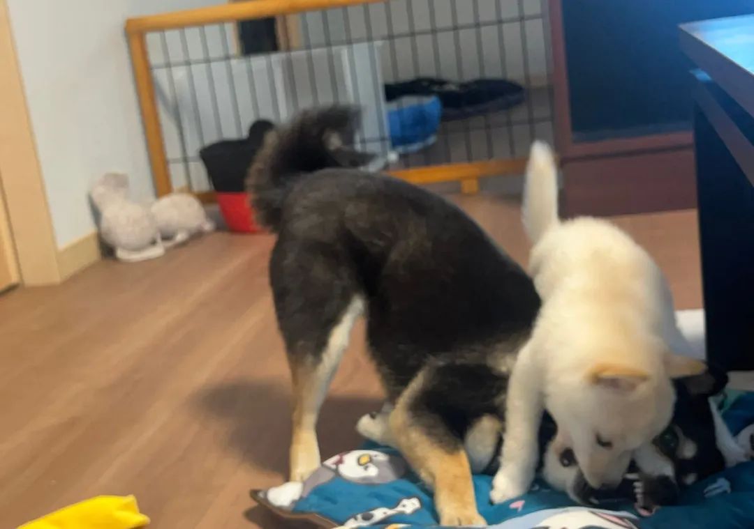 而等到它长大后,家里也有个小奶柴,小奶柴同样仗着年龄小不懂事,各种欺负它!