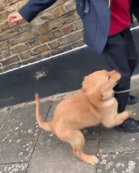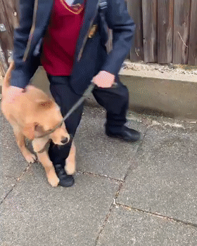 小金毛为了不离开小主人,就抱着他的腿,不让他去上学...