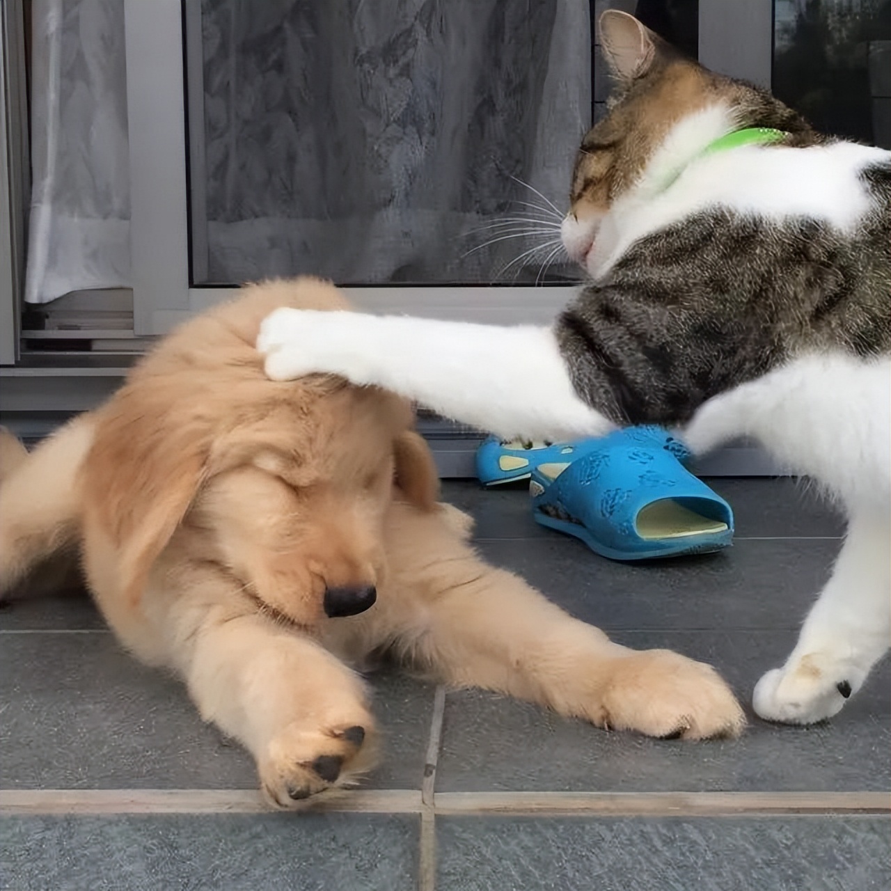 金毛:喵大佬为什么突然对我这么好...心慌慌!